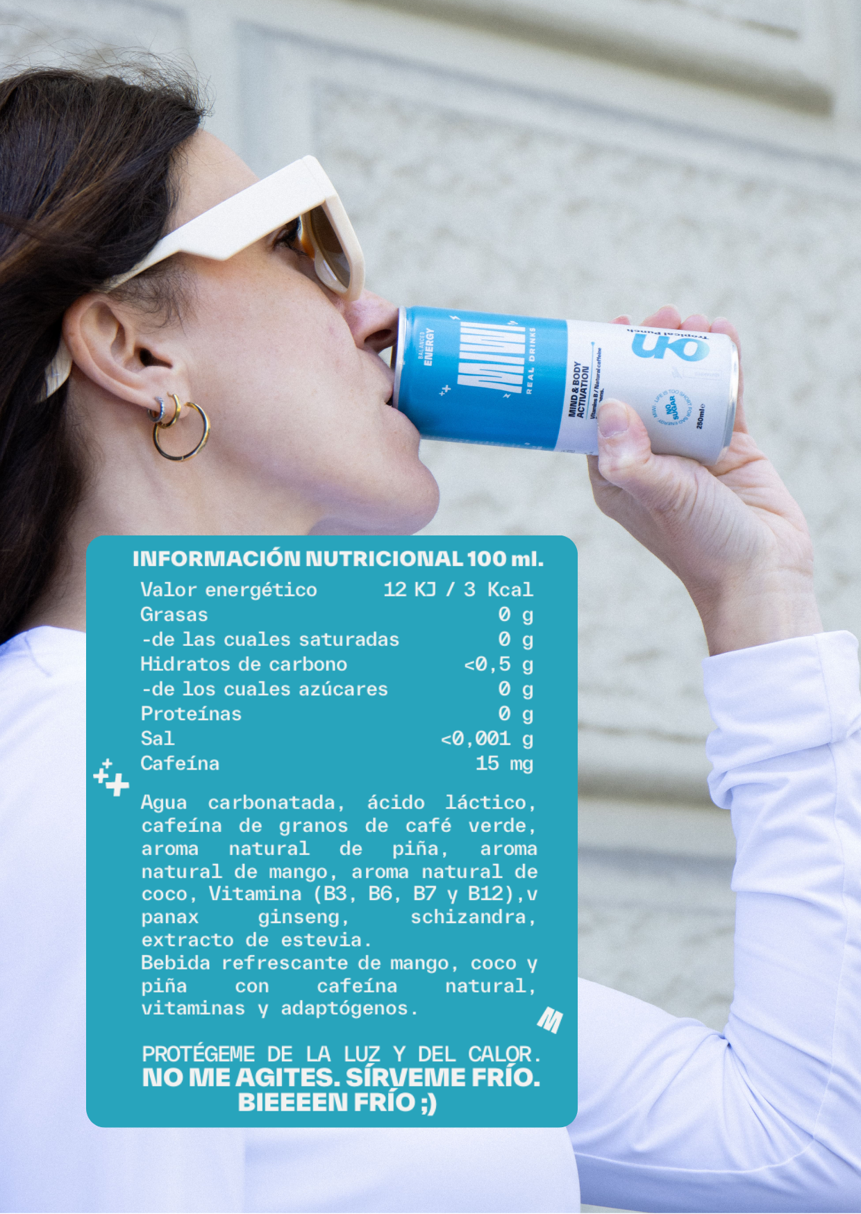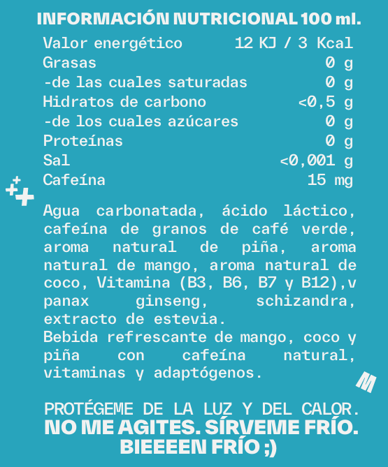 - Granos de café verde que aportan energía con una cafeína moderada, estable y sin bajones. Menos que un café con leche, un poco más que una Cola.